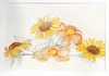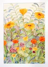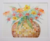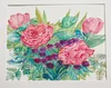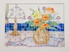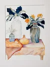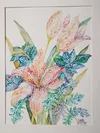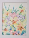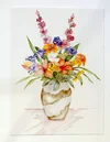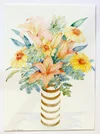 Ferns And Flowers In Gold-Ringed Vase 10.5 x 14.5